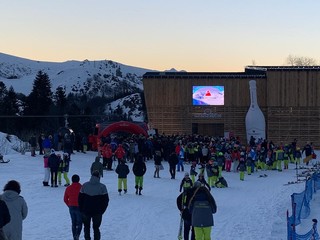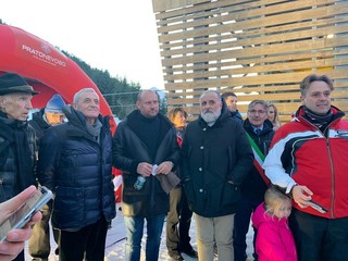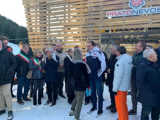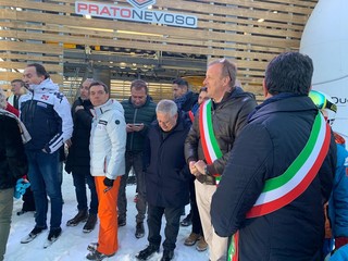 Parterre de rois e pubblico delle grandi occasioni a Prato Nevoso nel pomeriggio di oggi, sabato 11 gennaio 2020, per la storica inaugurazione della telecabina 10 posti "Bartholet Maschinenbau AG by Porsche Design", che ha sostituito la precedente seggiovia biposto del Rosso.