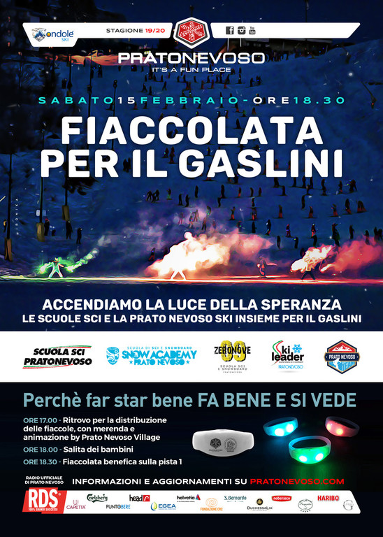 “Sarà una delle fiaccolate più grandi d’Europa per numero – spiegano gli organizzatori - ci apre il cuore sapere che aiuterà anche a raccogliere fondi per far star bene tanti piccoli pazienti oncologici. Alcuni di loro, guariti, sono stati ospitati la scorsa estate a Prato Nevoso. Una vacanza con le loro famiglie all’insegna del divertimento e della gioia ritrovata dopo la malattia”. E dopo la fiaccolata dei piccoli a Prato già pensano a un notturno dedicato sempre al Gaslini fissato per VENERDÌ 6 MARZO. L'incasso di quella serata sugli sci sarà devoluto per intero all’ospedale genovese perché “fare del bene fa star bene”.