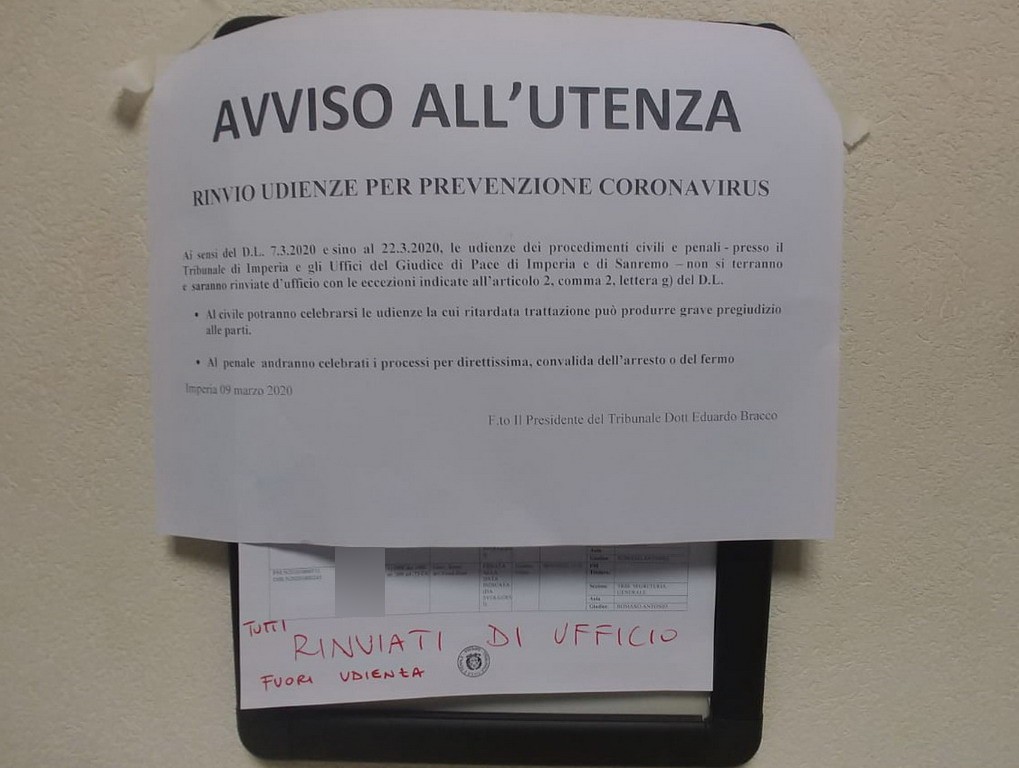 Coronavirus, la giustizia si ferma: al tribunale di Imperia tutto sospeso fino al 23 marzo (Foto)