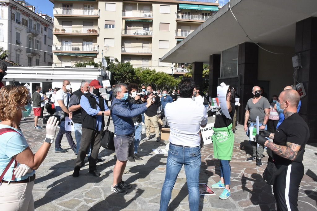 150/200 persone (secondo la Questura) e 500 per gli organizzatori, hanno manifestato quest’oggi il loro dissenso verso il Governo Conte, su sollecitazione del ‘Movimento imprese Italiane’, nato da un gruppo Facebook per volontà di alcuni imprenditori della città di Sanremo.