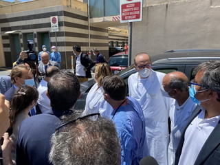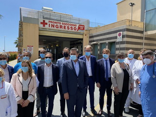 Dopo gli incontri in Comune, per il Presidente della Regione Toti e per la Giunta è stata la volta del saluto a medici ed infermieri del Pronto Soccorso e dell’intero ospedale ‘Borea’ di Sanremo, al termine dell’emergenza Coronavirus che li ha messi a dura prova.