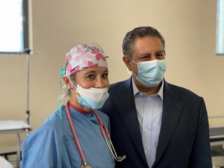 Un incontro per guardarsi negli occhi e dire grazie dopo mesi di battaglia contro il Covid19. E’ con questo sentimento di riconoscenza che oggi si è svolto il sopralluogo del presidente della Regione Liguria, Giovanni Toti all’ospedale “Borea” di Sanremo. Il Governatore, accompagnato dalla Vicepresidente e Assessore alla Sanità Sonia Viale, insieme agli assessori regionali al Turismo Gianni Berrino, all'Urbanistica Marco Scajola e al Presidente del Consiglio Regionale Alessandro Piana, ha incontrato in tarda mattinata una rappresentanza di medici, infermieri e operatori sanitari davanti al Pronto Soccorso del “Covid Hospital” di Sanremo.
