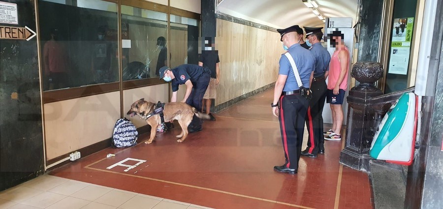 L'uomo con al seguito un cane pitbull ha terrorizzato alcuni passeggeri. E' stato immobilizzato ad Andora da un militare esperto di arti marziali. Hanno collaborato anche i Carabinieri di Diano Marina.