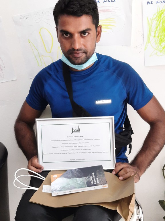 Alla fine di un anno scolastico impegnativo e contraddistinto, come per tutti, dall'interruzione della normale didattica in presenza, i 4 ragazzi hanno completato il percorso presso il CPIA di Imperia. B.K. è una ragazza nigeriana di 28 anni, G.Q. è un ragazzo pakistano di 24 anni, L.A. è nigeriano, 28 anni e I.H. viene dal Sudan, ha 28 anni e lavora per la Cooperativa ormai da tanto tempo. Vivono a Imperia e sono di Imperia.