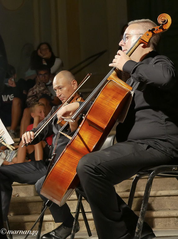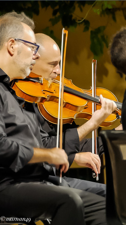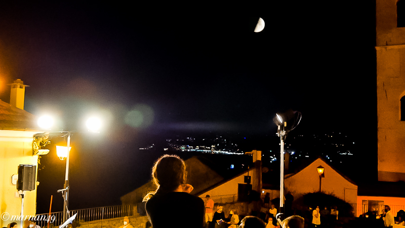 Un pubblico attento e interessato ha potuto godere del doppio spettacolo della luna crescente, giunta al secondo quarto, e del quartetto di archi Ensembleche ha proposto un programma curioso e variegato tra arie d’opera, brani cameristici e celebri estratti dal Musical americano, come è stato immortalato nei bellissimi scatti di Marcello Nan.