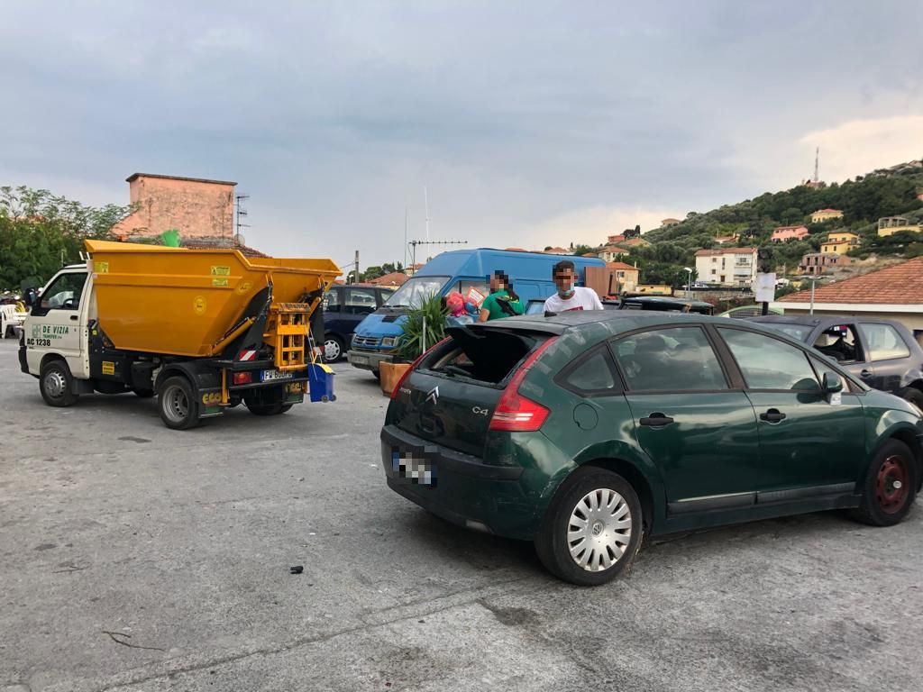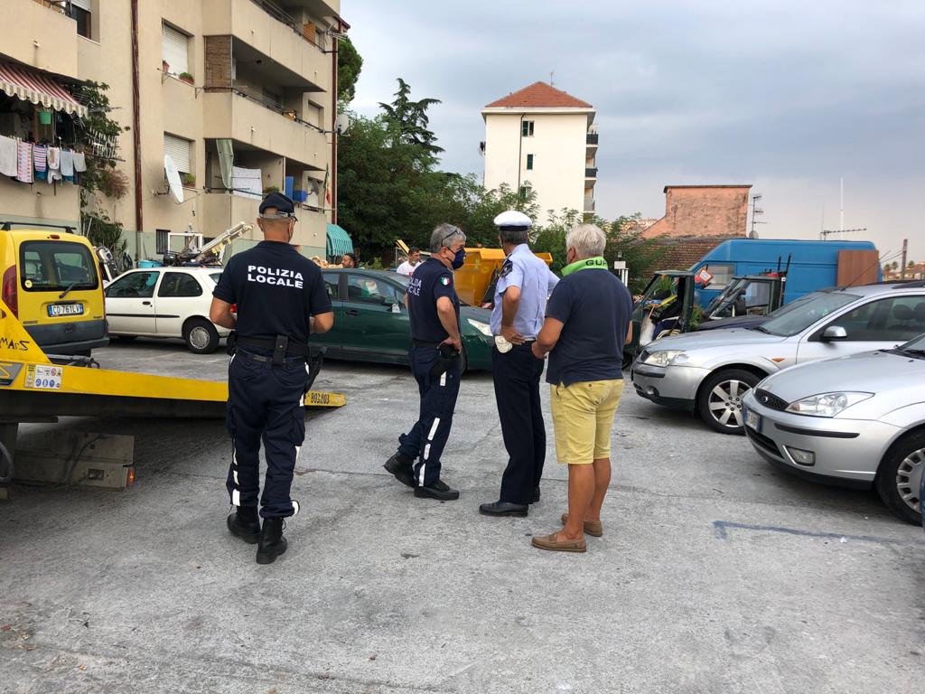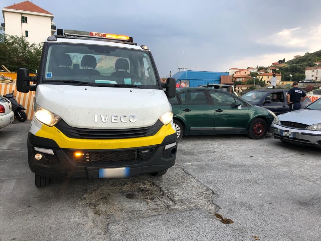 Imperia: blitz alle case parcheggio, la polizia municipale fa rimuovere le auto abbandonate (foto e video)