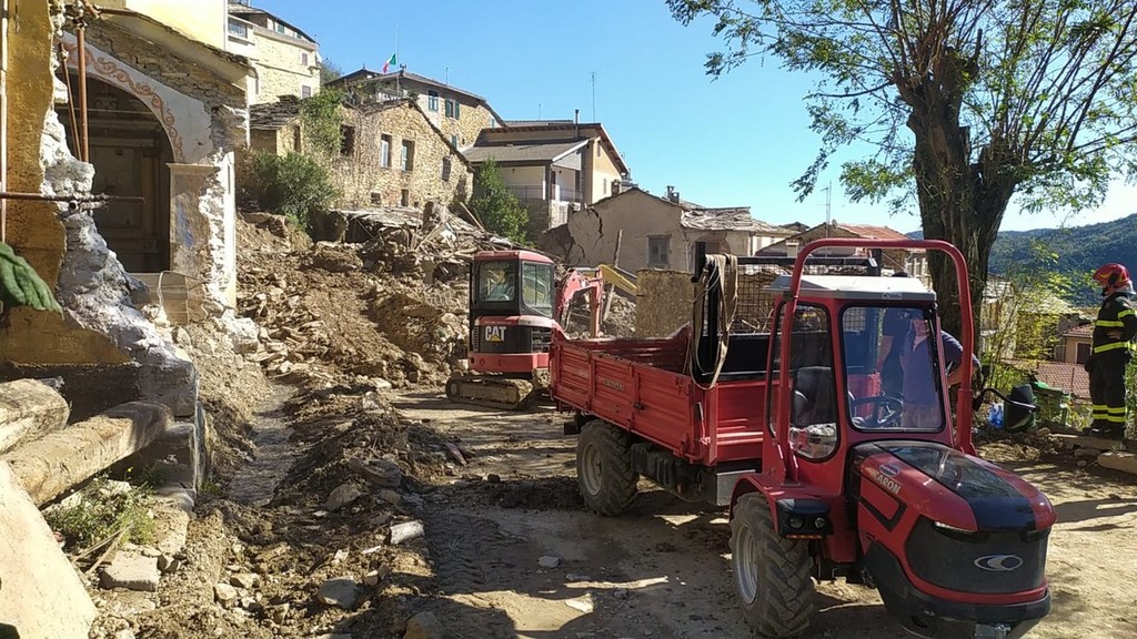 Nel centro della Valle Arroscia le ruspe del Comune, insieme ai vigili del fuoco, procedono nella demolizione delle abitazioni inghiottite dalla valanga di fango. Serie criticità rimangono per il depuratore, gli acquedotti e la viabilità
