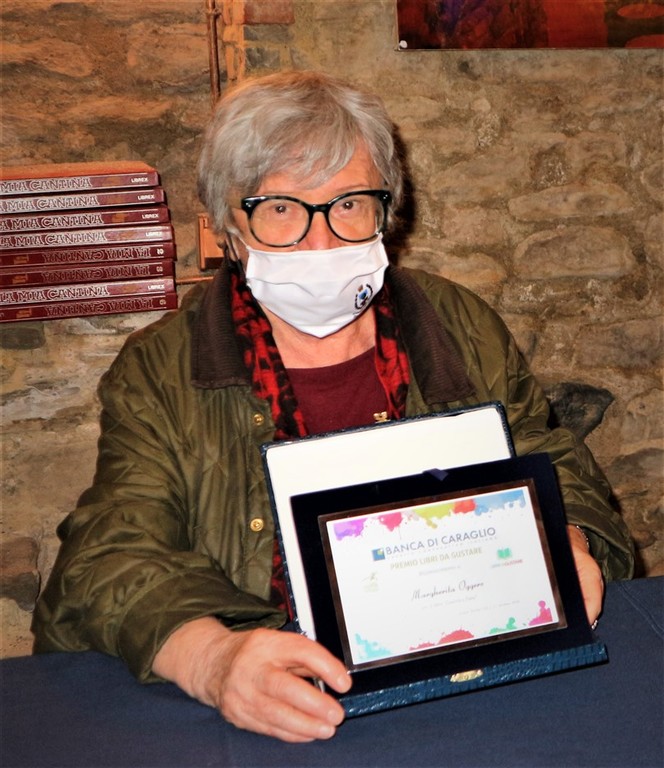 All’incontro, condotto dalla giornalista Barbara Ronchi della Rocca hanno partecipato insieme all’autrice premiata anche Annalisa Vittone, presidente dell’Enoteca Regionale di Acqui Terme, Claudio Porchia presidente dell’Associazione Ristoranti della Tavolozza. Il pubblico presente e nel pieno rispetto delle normative anti-covid19 ha potuto seguire ed applaudire la presentazione del libro “Guerra e Pane” di Margherita Oggero edizioni Slow food. Un racconto divertente ed emozionante durante il quale è stato affrontato il tema del rapporto dell’autrice con il padre e con il nonno, ma anche con la mamma e la nonna attraverso i ricordi di un’infanzia trascorsa in una città distrutta e martoriata dalla guerra. I divertimenti bambini, raccontati sempre con grande garbo e leggerezza, insieme ai ricordi del cibo rendono questo libro davvero prezioso e interessante.