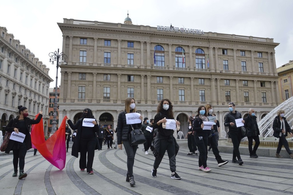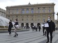 Ancora proteste contro la difficile situazione economica determinata dalla pandemia in pazza De Ferrari, e questa mattina è stato il turno dei lavoratori del comparto cultura e spettacolo, settore che ha subito uno stop dal lockdown generale di inizio 2020 mai del tutto scomparso.