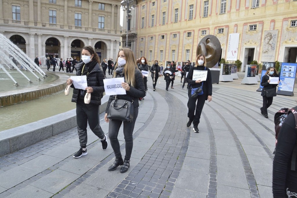 I lavoratori in piazza oggi, oltre che rivolgere un appello alle istituzioni affinché si prendano carico di mettere finanziariamente il settore in grado di sopravvivere, chiamano a raccolta da una parte i sindacati e le altre categorie produttive in difficoltà al fine di unire le forze per ottenere più attenzione da Governo, Regioni e Comuni: "Siamo qua innanzitutto perché diversamente che nel resto d'Italia in Liguria non è possibile manifestare, diritto che reclamiamo - spiega un lavoratore -. Abbiamo deciso questa iniziativa spontanea senza l'appoggio dei sindacati, ai quali chiediamo maggiore attenzione alle istanze dei lavoratori, per ricordare a istituzioni e cittadinanza come la nostra categoria abbia da subito messo in pratica tutele le misure necessarie per continuare a lavorare in sicurezza. Mentre la ristorazione è riuscita ad ottenere maggiore libertà di azione durante l'estate il nostro lavoro non è mai ripartito, ma ora che il coprifuoco colpisce le attività di somministrazione mi auguro ch le proteste non siano più settoriali. Io faccio sia il tecnico che il cameriere, e mi auguro che non si stia più chiusi nelle rivendicazioni che riguardano la propria categoria, ma che si lotti insieme avendo in mente il quadro d'insieme. Quest'emergenza sanitaria è diventata politica e sociale: vogliamo una riforma strutturale del settore dello spettacolo e della cultura. Non possiamo più accettare lo scarica barile politico fra i vari livelli di governo o fra la destra e la sinistra: vogliamo un dialogo vero oltre le fazioni e oltre le bandiere".