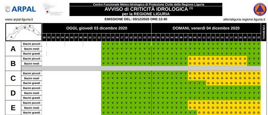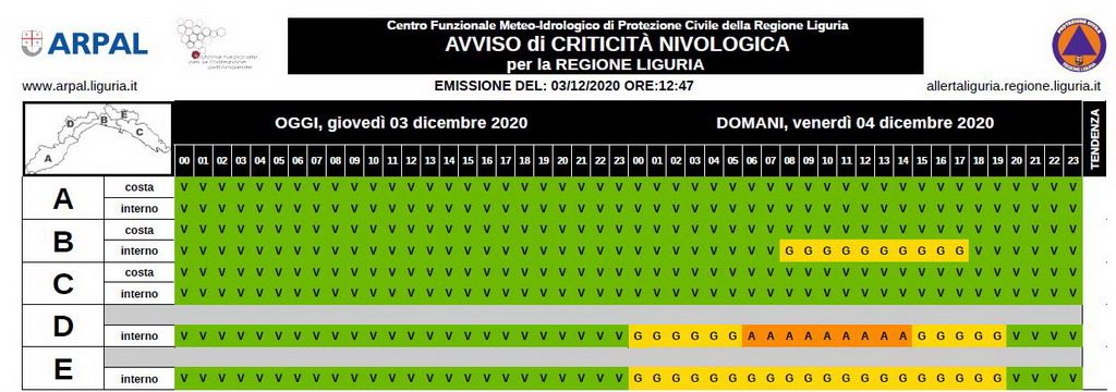 La nostra sarà l'unica provincia che non prevede nessun tipo di allerta che, invece, sarà 'gialla' per piogge, temporali e neve nel savonese, genovesato e Levante