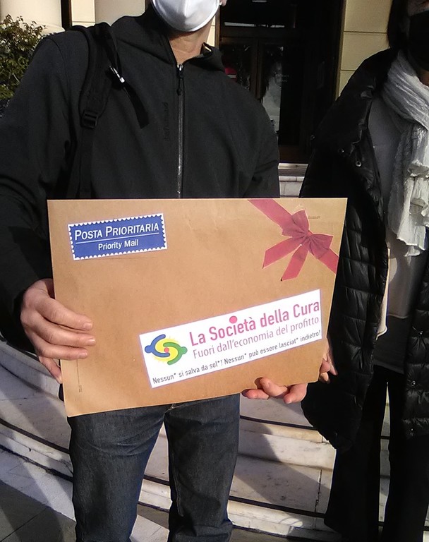 Cittadine, cittadini e associazioni riuniti nella Società della Cura, dopo la mobilitazione in più di 50 piazze del Paese avvenuta lo scorso 21 novembre, oggi consegnano un “Dono di Natale” alle Istituzioni nazionali e locali del Paese, un documento contenente le proposte condivise per uscire da subito dall'emergenza individuando 175 miliardi disponibili subito.