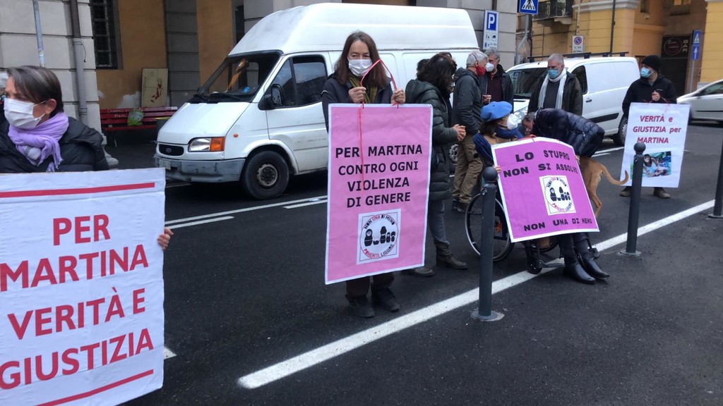 “Siamo qua per solidarietà con i genitori di Martina, come 'Non una di meno' condanniamo ogni atto di violenza contro le donne, nel caso di Martina giustizia non è stata fatta”, spiega a Imperia News Maria Luisa Renzi, rappresentante di 'Non una di meno'.