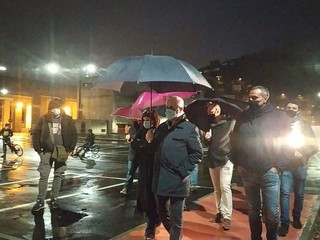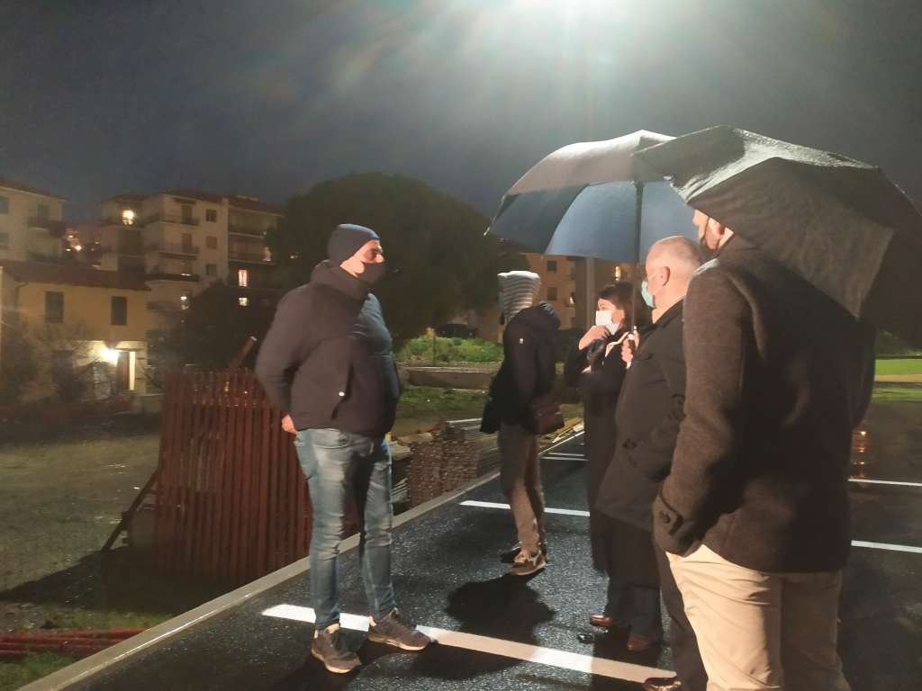 Questa zona che era in assoluto degrado, è diventata una zona dove finalmente anche in questo rione di Castelvecchio, i giovani, i bambini, le persone possono stare in mezzo all'aria in un luogo assolutamente dignitoso. È stato fatto molto bene, è stato fatto con molto interesse, tutto racchiuso nei soldi concordati con la Ferrovia, e invece che fare una cosa sola ne abbiamo fatte quattro con la stessa cifra. Ha lavorato con molta passione su questo il nostro assessore all'arredo urbano così come gli uffici comunali, l'impresa ha lavorato bene, il progettista ha lavorato bene. È una giornata di soddisfazione, c'è la pioggia che vediamo come inaugurale. Ci stiamo preparando in città, con tutti questi cantieri aperti per far sì che la ripresa che speriamo più vicina possibile, possa offrire una città accogliente ai nostri visitatori, questa città deve avere più turisti per riuscire a dare più lavoro".