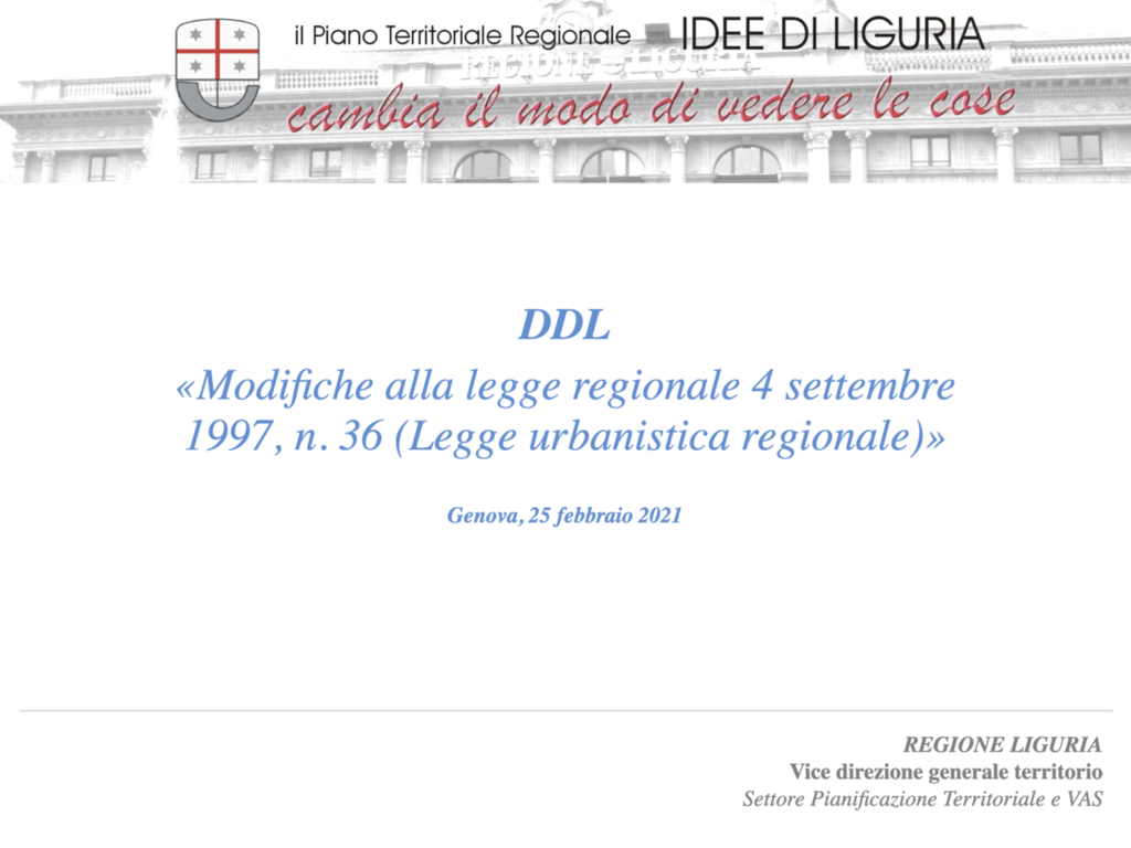 ”Le variazioni apportate alla legge - prosegue Scajola - sono preliminari all’adozione del Piano Territoriale Regionale, uno strumento a cui stiamo lavorando da tempo insieme alle amministrazioni locali e agli stakeholder, che servirà a tracciare le linee per lo sviluppo armonico del territorio e a migliorare la qualità di vita dei liguri e dei turisti per i prossimi vent'anni. Una Liguria in cui le città capoluogo, i grandi centri costieri e i centri di riferimento delle valli interne offriranno servizi più efficienti, qualificati e meglio distribuiti, con un entroterra “vivo”, con più opportunità, che ospiterà start up innovative, e con un fronte mare riqualificato e più green".