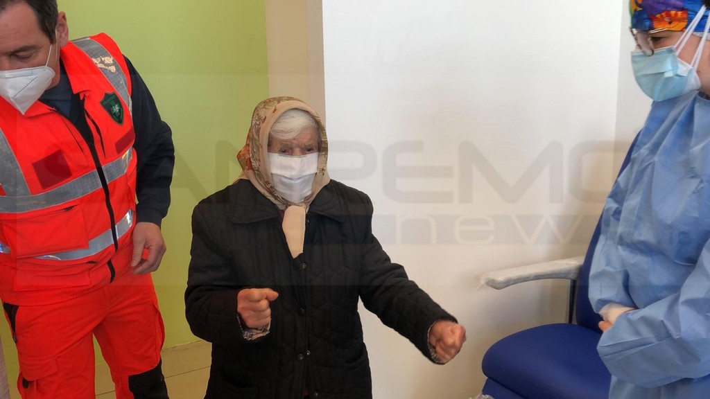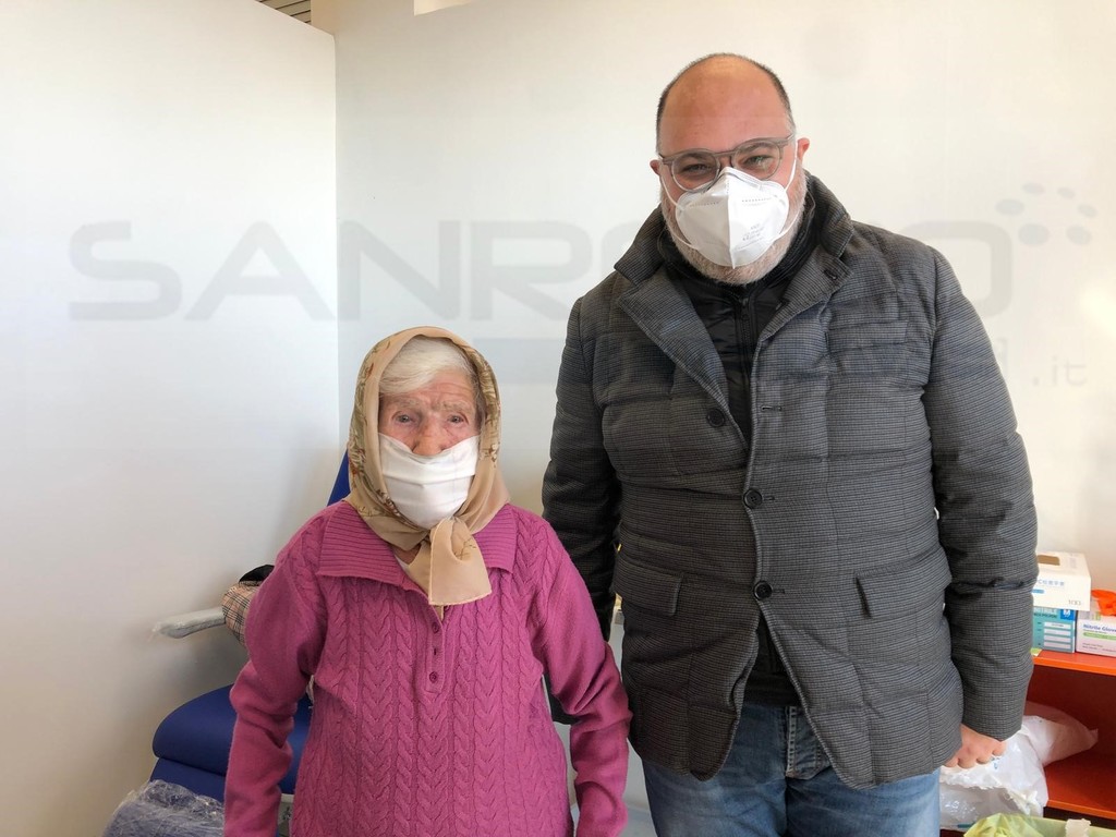 Oggi, al Centro Vaccini Covid della Stazione di Taggia è stata vaccinata la persona più anziana della provincia di Imperia. Si tratta di Anna Domenica Febbo, di 105 anni, di origine abruzzese ma residente a Riva Ligure.