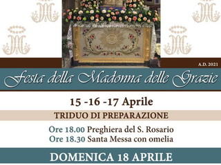 Domani si festeggia a Dolcedo, nella Chiesa Parrocchiale San Tommaso, la solennità della Madonna delle Grazie. Per la comunità parrocchiale è una festa importantissima, che cade tradizionalmente la terza domenica di Pasqua, ed ha sempre avuto il suo fulcro nella Processione Generale.