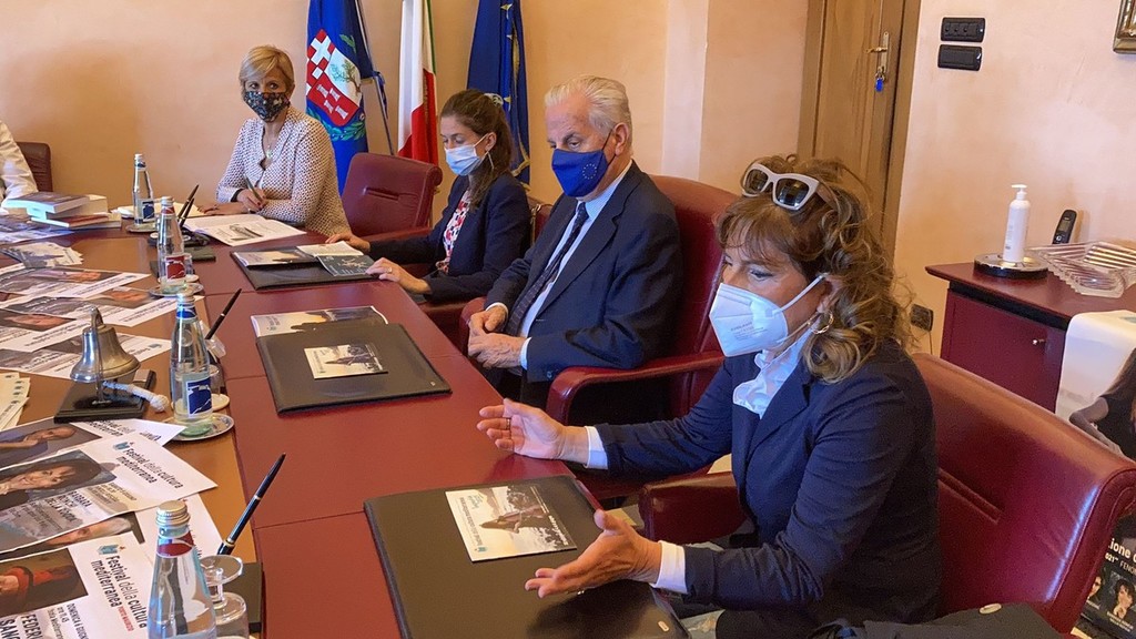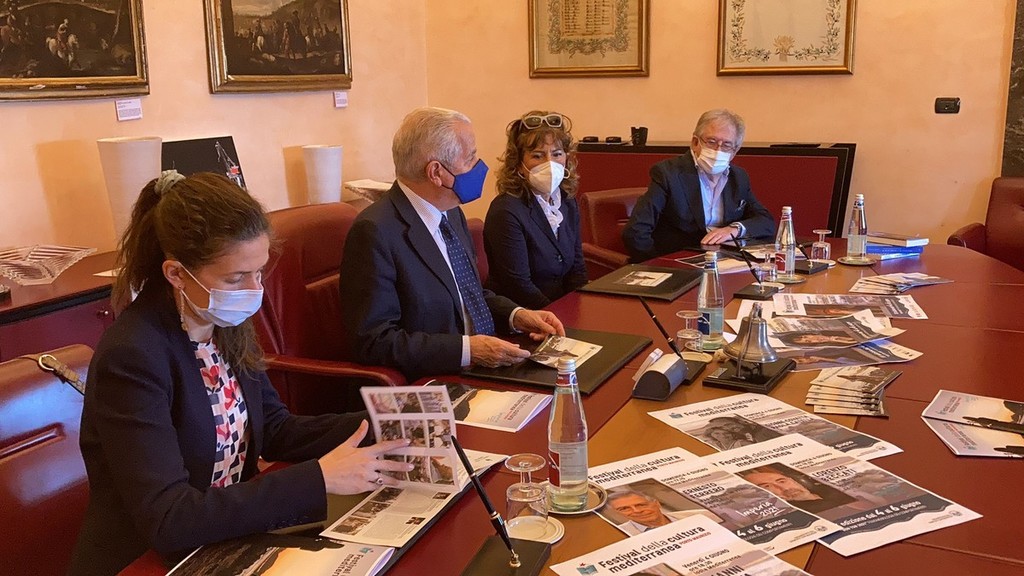 Presentata la 20esima edizione del 'Festival della cultura mediterannea' stamani in Comune da parte del sindaco Claudio Scajola, l’assessore Marcella Roggero, Luciangela Aimo presidente del comitato 'Porto Maurizio', Giuliano Ferrari responsabile sezione 'gusto' del Festival e da Paola Savella responsabile di 'Espansione eventi'