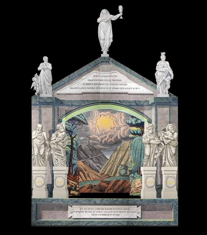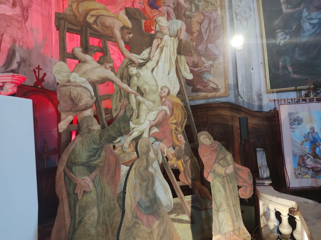 "La mostra riprende il discorso di conoscenza e valorizzazione, avviato trent’anni fa dall’allora Soprintendenza per i Beni Artistici della Liguria e sfociato nella esposizione dal titolo Il gran teatro dei cartelami tenutasi al Palazzo Ducale di Genova nel 2013 – spiega Alfonso Sista – Con l’occasione, oltre alla rilettura di numerosi apparati a cura di valenti studiosi verranno mostrati per la prima volta alcuni cartelami ritrovati, ma scomparsi dalla memoria collettiva, come le dodici figure del complesso della Crocifissione e Deposizione di Cristo di Civezza, l’apparato per il Sepolcro di Acquetico del 1738, il Calvario e il Cristo alla colonna di Toirano. Gli apparati effimeri costituivano particolari scenografie, di struttura più o meno complessa, messe in scena sia in Italia che nel resto d’Europa in determinate occasioni, tra i secoli XVI e XX, e smontate al termine dell’evento che le aveva originate. Dapprima costituiti da semplici apparati, i Sepolcri si evolveranno assumendo progressivamente forme molto elaborate e complesse di dimensioni tali da ricoprire intere cappelle in cui si cimentarono pittori ed architetti. Uno degli obiettivi di queste rappresentazioni, allestite con il meccanismo della “festa” barocca, era quello della “meraviglia” che si raggiungeva attraverso una complessa azione combinata di musiche, figurazioni e luci, tali da suscitare lo stupore nel pubblico!.