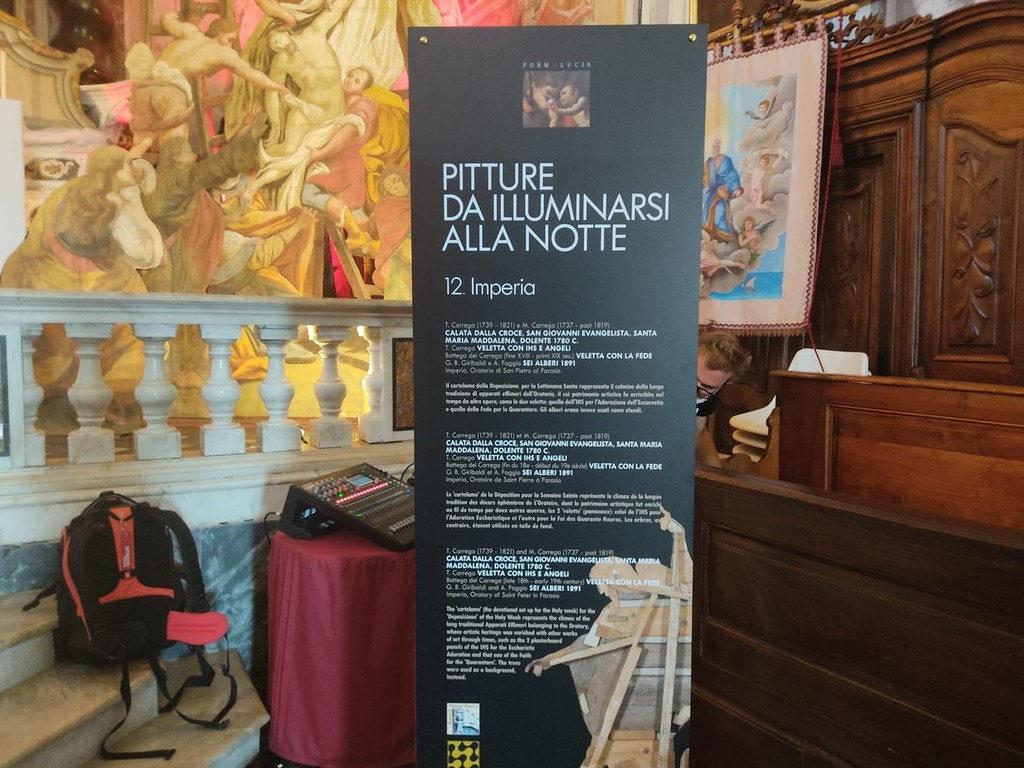 Inaugurata oggi all’Oratorio di San Pietro, al Parasio di Porto Maurizio, Imperia, la nuova mostra realizzata dall’Ufficio Beni Culturali della Diocesi di Albenga-Imperia nell’ambito del progetto di valorizzazione Formae Lucis. "Pitture da illuminarsi alla notte", visitabile fino al 15 settembre 2021, è una mostra diffusa sul territorio diocesano e dedicata all’arte effimera dei cartelami, apparati scenografici utilizzati per i riti della Settimana Santa.