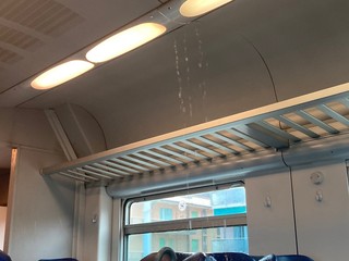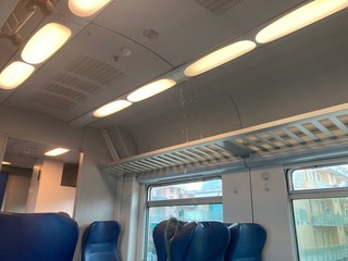 Disservizi e disagi ieri pomeriggio sul regionale delle 17.35: dal tetto sgorgavano litri di acqua di condensa dall'impianto dell'aria condizionata: inutilizzabili diversi posti a sedere e in molti sono arrivati 'zuppi' a destinazione