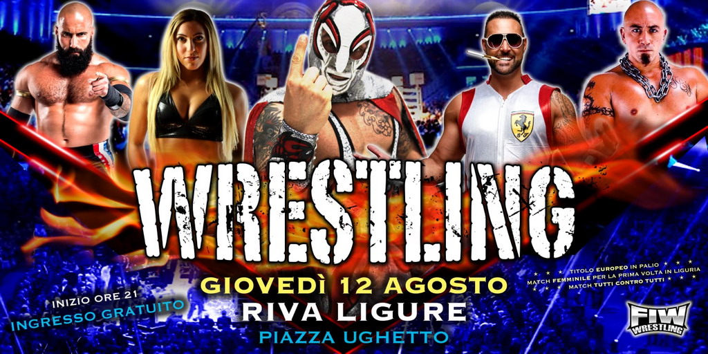 Torna il grande Wrestling professionistico nella splendida cornice di Riva Ligure. Questa sera alle 21 alcuni tra i lottatori di maggior rilievo internazionale si daranno battaglia sul ring di piazza Ughetto a colpi di ‘dropkick’, ‘suplex’ e oggetti usati alle spalle dell’arbitro.