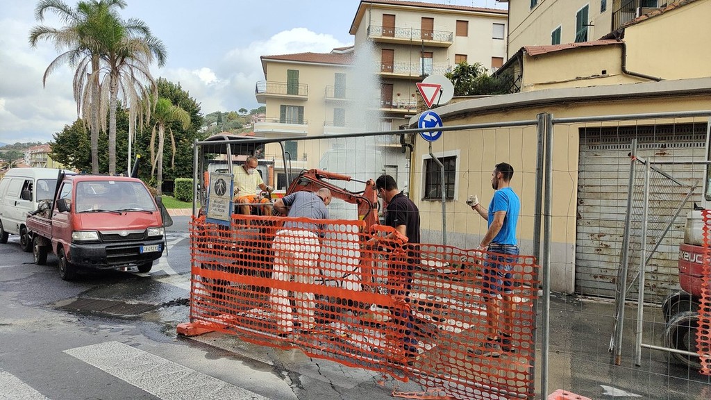 Nuova rottura dell'acquedotto oggi a Imperia, precisamente a Borgo Fondura, nei pressi dell'ex passaggio a livello.