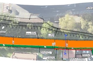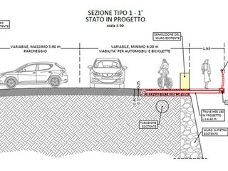 L’amministrazione, scegliendo di inserire dei parcheggi in verticale, ha relegato in circa 6 metri le auto che vanno e vengono in due direzioni, quelle impegnate nelle manovre e, infine, le biciclette. Basta pensare che la ciclabile dovrebbe avere una larghezza, in sede propria, di 4,5 metri per capire che di fatto, in quel punto, la ciclabile non esiste più. Inoltre, per recuperare lo spazio per i posteggi, si è prevista una passerella pedonale a sbalzo sul muro di sostegno della strada; intervento che ci preoccupa molto per l’aggravio di peso che si va a creare su un muro molto datato, su cui non sono previste opere di consolidamento.