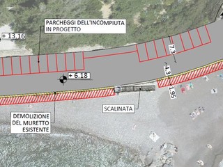 Si vedano le tavole con la situazione in zona Pizzeria La Scialuppa e presso la scaletta prima della Galeazza (ndr: i progettisti chiamano “incompiuta” anche il tratto prima della Galeazza. Si vede che sono “foresti”…).