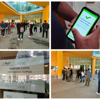 Imperia, corsa al tampone valido per il green pass: tanti i cittadini in fila al Palasalute (foto)