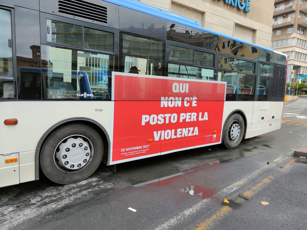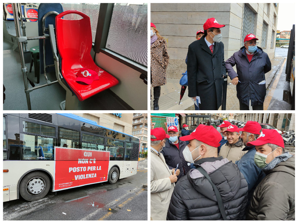 Imperia, un sedile rosso sul bus: anche Rt dice no alla violenza sulle donne (foto)