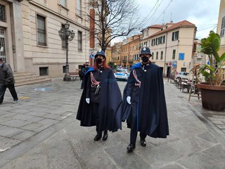 Vigili urbani in alta uniforme. Ha preso il via stamattina in via Cascione a Porto Maurizio la ‘ronda’ natalizia a Imperia che ha visto gli agenti della Polizia Locale incontrarsi con i Carabinieri della locale compagnia, anch'essi in alta uniforme. Bissata l’iniziativa promossa lo scorso anno, sia pure in lockdown, dal sindaco Claudio Scajola.
