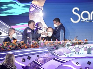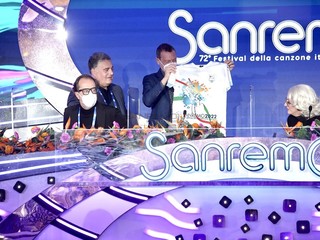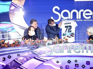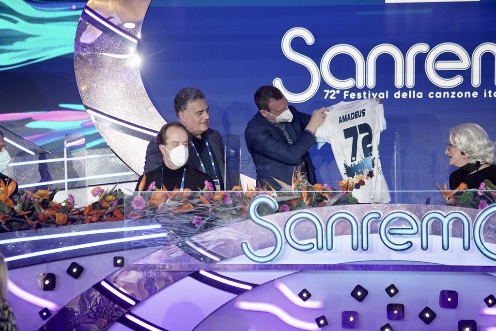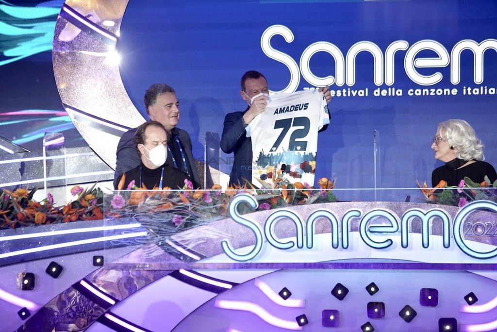 Il Festival di Sanremo si tinge di biancazzurro. Questa mattina Amadeus ha ricevuto in sala stampa una maglia speciale della Sanremese, donata dall’assessore allo Sport, Giuseppe Faraldi.