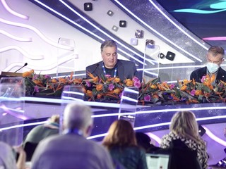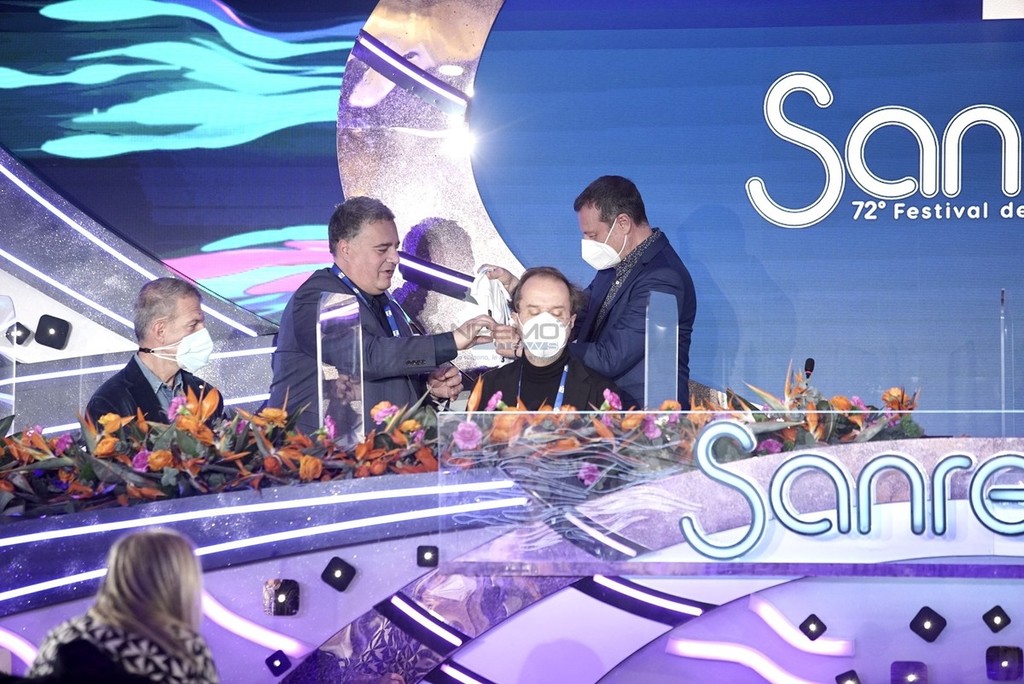 72° Festival di Sanremo: maglia speciale della Sanremese per Amadeus, gliela consegna l’assessore Faraldi (Foto)