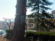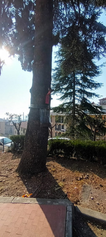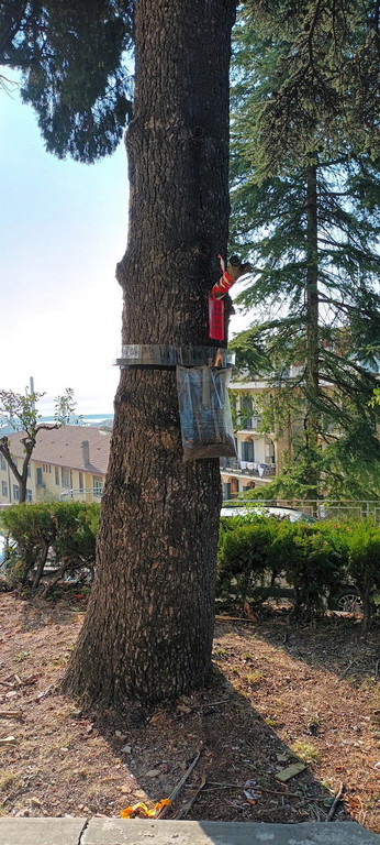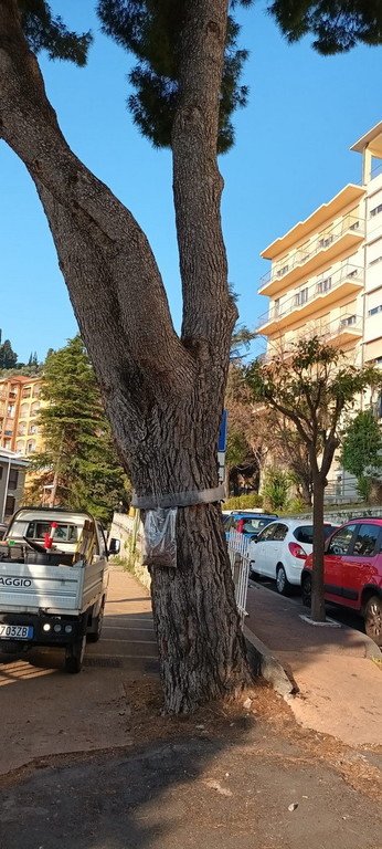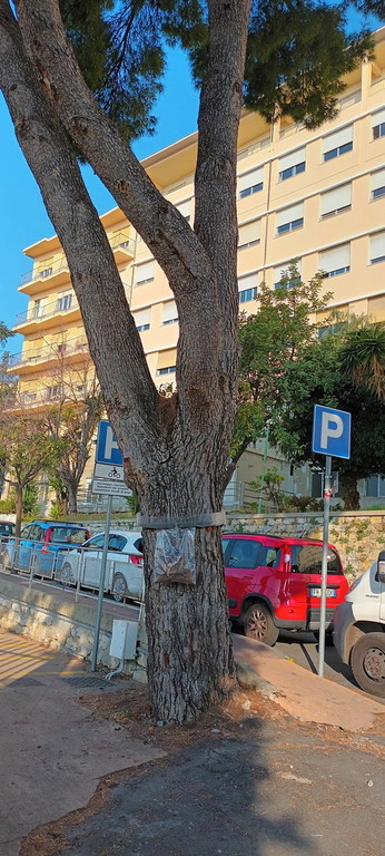 Grazie all'impegno e alla sensibilità per le tematiche ambientali, da parte dell'ufficio Economato di Asl1, sono state installate sugli alberi di pino, presenti all'interno del cortile dell'ospedale di Imperia, dei metodi, ad impatto ambientale zero, di contrasto alla processionaria. L'operazione, resa possibile grazie anche all'assistenza agronomica del Dott. Manuel De Canal, consiste nel posizionare un collare sul tronco dell'albero di pino, intercettando le processionarie che scendono dal tronco, convogliandole tutte in un sacchetto, che verrà successivamente rimosso in sicurezza. In un ottica 'green', Asl1 ha deliberatamente puntato su questo tipo di dispositivi totalmente ecologici, biologici ed economicamente sostenibili, permettendo così, di intercettare le processionarie che vengono accolte nel sacchetto biodegradabile traforato, in modo da trovare all'interno dello stesso, un habitat quasi simile al terreno sottostante la pianta.