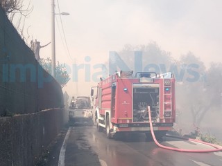 Incendio di sterpaglie, da questa mattina alle 11.30 sulla strada per Poggi a Imperia.