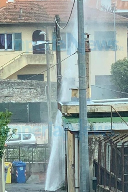 Ennesimo guasto, nuovamente con un geyser, questo pomeriggio in zona Fondura a Imperia. La rottura di una tubazione ha provocato la fuoriuscita dell’acqua con una forte pressione.