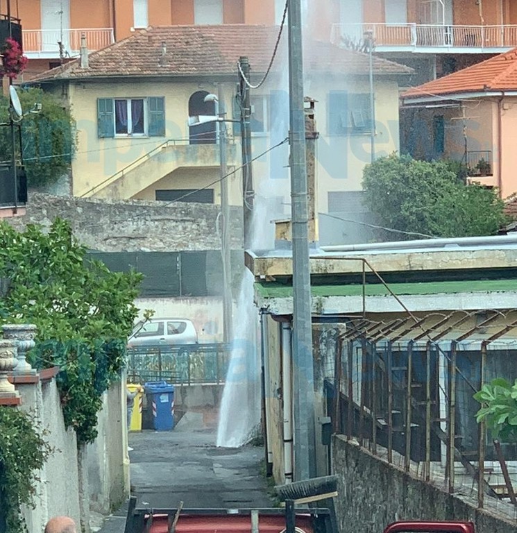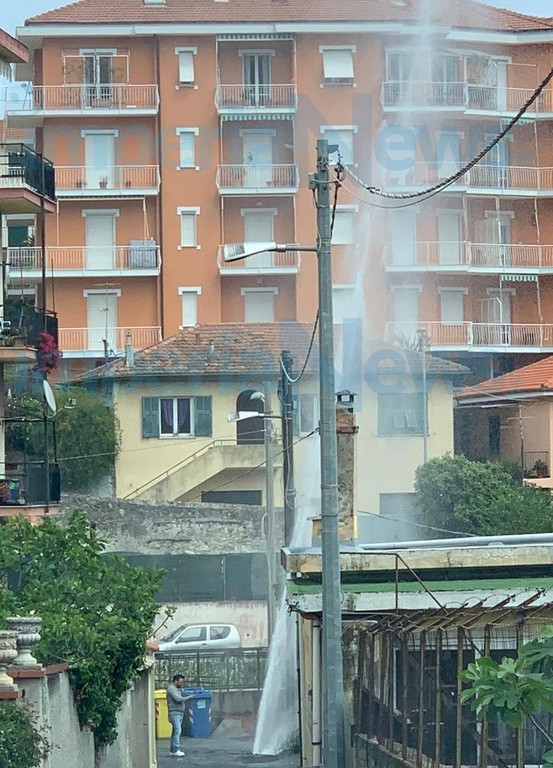 Imperia: si rompe un'altra tubazione dell'acqua, geyser oggi pomeriggio alla Fondura (Foto e Video)