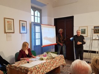 Dopo i saluti e l'introduzione della presidente Simona Gazzano e del membro del consiglio direttivo Angelo Giribaldi, sono intervenuti il giornalista Stefano Delfino, Francesco Berio, figlio di Ligustro che ha approfondito tramite un filmato gli aspetti tecnici dell'opera paterna. Presenti tutti e tre i figli dell'artista.
