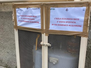 Sorpresi anche i residenti di via San Maurizio che ieri sera al posto delle Iesi di via Benza si sono ritrovati un cartello che diceva che le isole ecologiche erano state trasferite, appunto, in via Acquarone. Ora, le Iseco in questione sono state spostate nella viuzza sottostante, via di Porta Nuova.