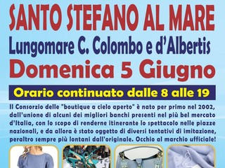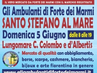 "Gli Ambulanti di Forte di Marmi”! Il mercato di qualità più famoso d’Italia torna a grandissima richiesta nell’Imperiese, con tutto il meglio del Made in Italy artigianale e le ultime tendenze della moda. Le ormai mitiche “boutique a cielo aperto” dell’originale Consorzio sono attese domenica 5 giugno a SANTO STEFANO AL MARE (Lungomare C. Colombo e d’Albertis). Dunque, un appuntamento da non perdere assolutamente per i tanti appassionati del genere, con una giornata che sarà come sempre all’insegna dello shopping più glamour e conveniente, con orario continuato, anche in caso di maltempo, dalle 8 alle 19.