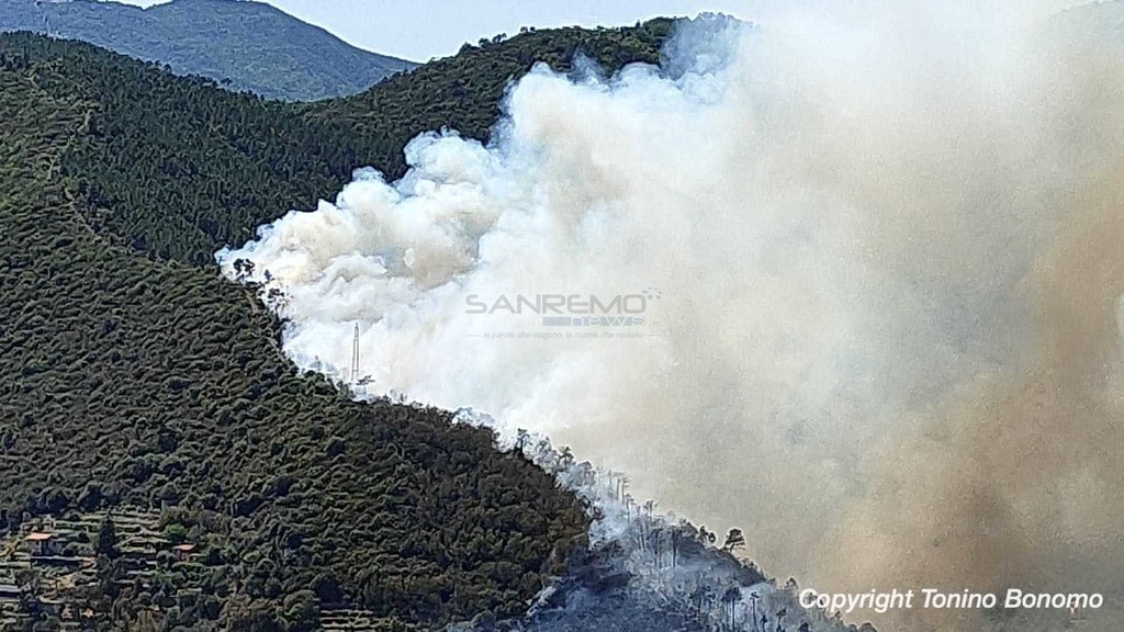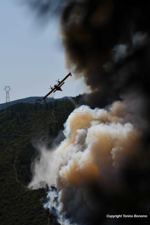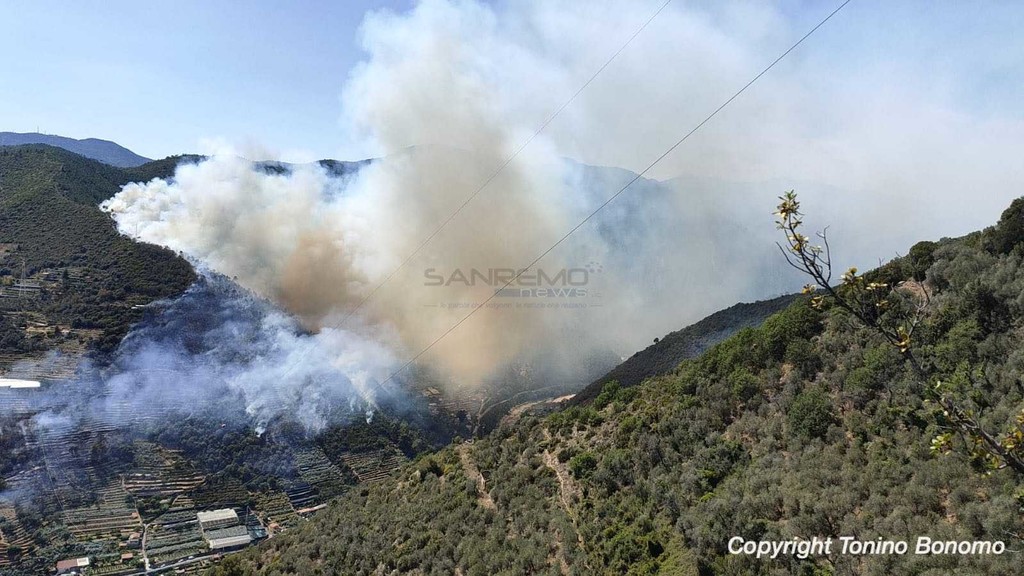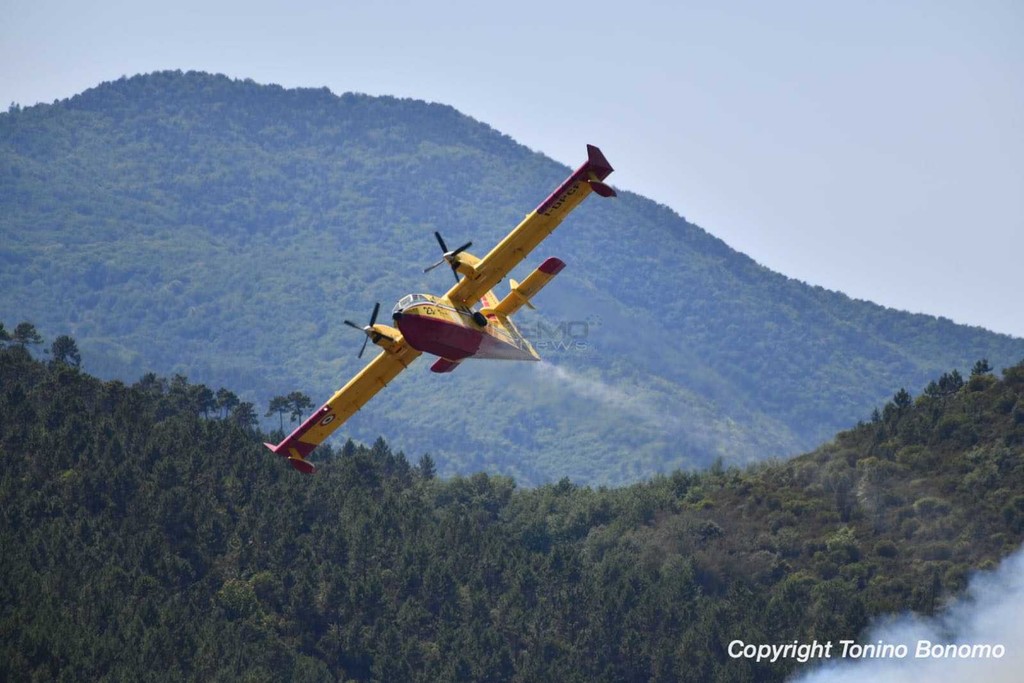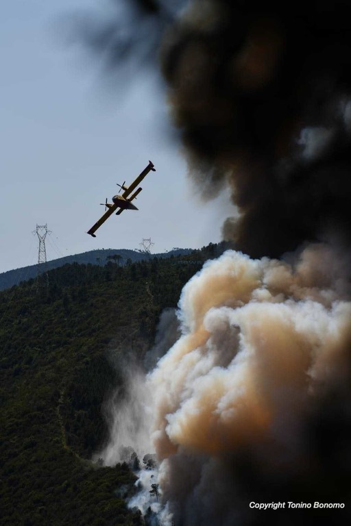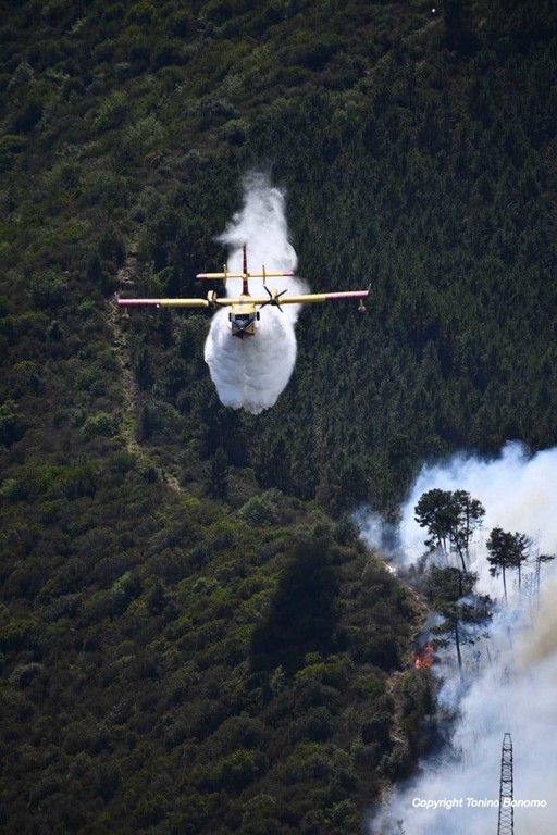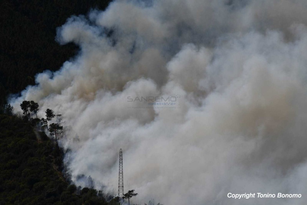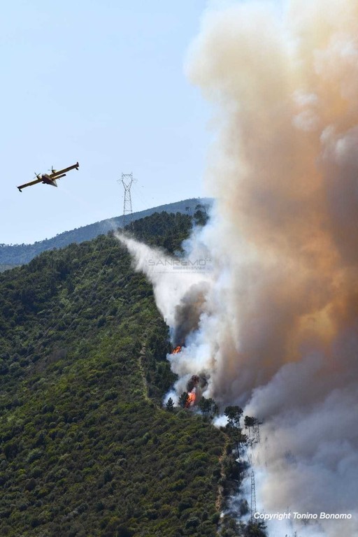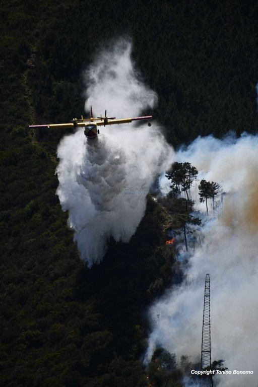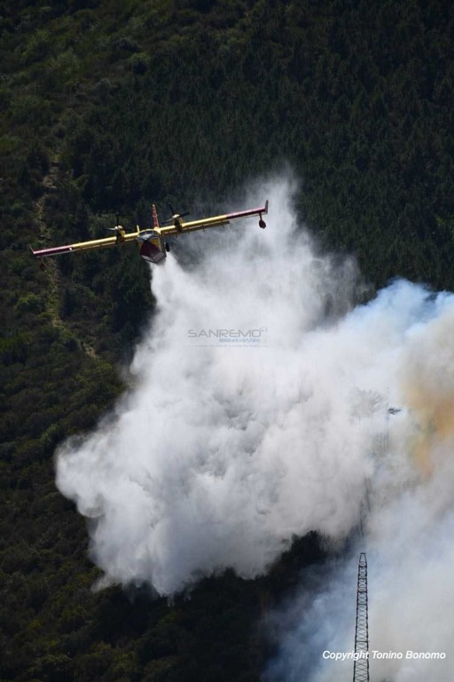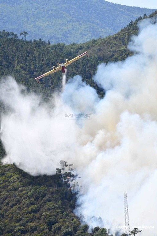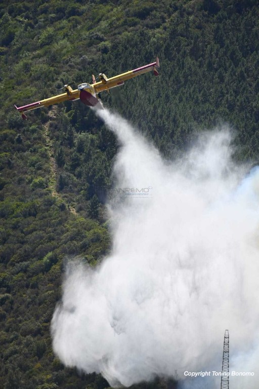 Taggia: due Canadair e un elicottero impegnati anche stamattina per lo spegnimento dell'incendio di ieri (Foto)