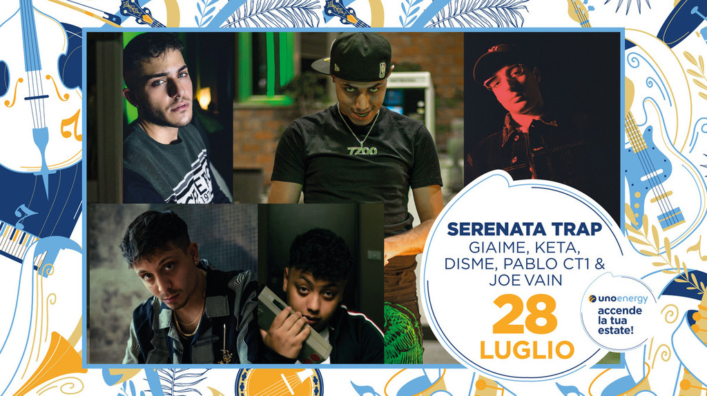 Il 28 luglio Serenata trap: Giaime, Keta, Disme, Pablo Ct1 e Joe Vain. Da quando ha iniziato a farsi largo nei primi anni 2000 nelle periferie degli Stati Uniti il trap (inizialmente riduttivamente considerato una sottospecie dell’hip hop e del rap) il trap è diventato uno dei generi musicali più amati dai giovanissimi che vedono nei loro esponenti veri e propri miti. Caratterizzato da testi veloci, spesso crudi ma anche ironici, il trap è una realtà consolidata anche in Italia. L’evento in programma riunisce Giaime, Keta, Disme, Pablo Ct1 e Joe Vain considerati tra i massimi protagonisti italiani.