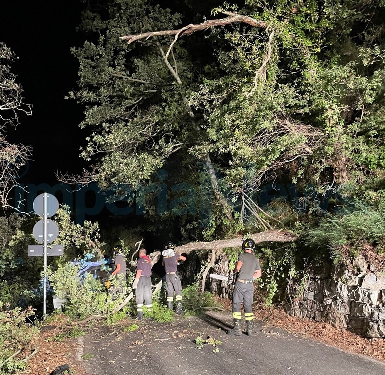 Grossa quercia cade sulla Provinciale 29 tra Chiusanico e Gazzelli: pronto intervento dei Vigili del Fuoco (Foto)