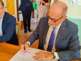 Una firma che “rivoluziona” la geografia degli uffici pubblici a Imperia. Stamattina nella sede della Provincia, è stato siglato, infatti, il Protocollo d’intesa per soddisfare il fabbisogno di spazi per le funzioni istituzionali di Regione (capofila dell’accordo), Provincia e Comune di Imperia, Asl, Arpal, Polo universitario imperiese, Università di Genova, Alfa (Agenzia Liguria per ilLavoro, Formazione e Accreditamento), Istituto zooprofilattico sperimentale.