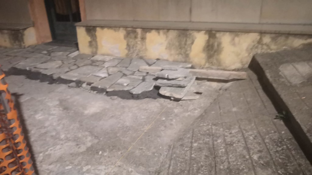 L’assessore Ester D’Agostino invia i tecnici comunali, mezza pavimentazione già smantellata. “Ma ora?”, si chiedono i cittadini quale sarà il destino del luogo dove si gioca a pallonetto?”
