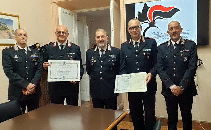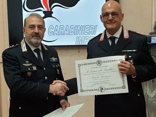 Questa mattina, negli uffici della Caserma “Somaschini” di Imperia, il Comandante Provinciale dei Carabinieri di Imperia, Colonnello Marco Morganti, alla presenza di una rappresentanza del Comando ha consegnato i diplomi della “Medaglia Mauriziana”, che viene conferita, con Decreto del Presidente della Repubblica e su proposta del Ministro della Difesa al personale che ha raggiunto i dieci lustri di carriera militare”, al Luogotenente C. S. Gianluca Ciocchetti ed al Luogotenente C. S. Pier Franco Rivano, rispettivamente Comandante del Nucleo Informativo del Comando Provinciale e Comandante della Stazione di Ospedaletti.