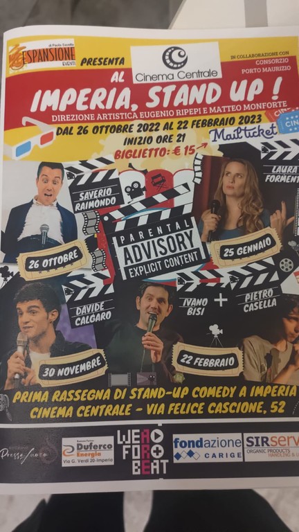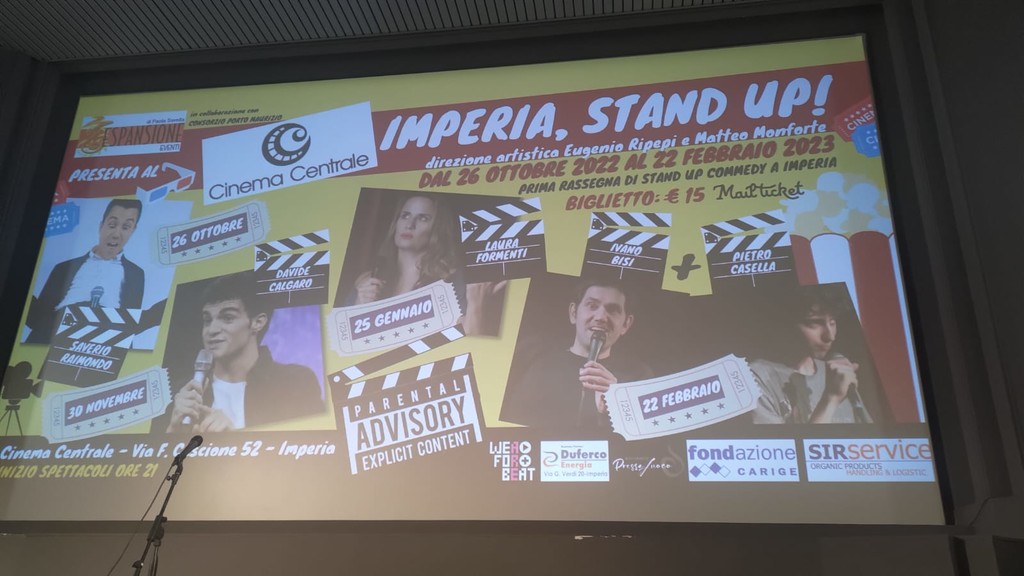 È la prima volta nella città di Imperia per questo genere di comicità "politicamente scorretto" di derivazione statunitense, la stand-up, che sta tenendo incollate impressionanti masse di pubblico alle poltrone dei teatri e ai divani degli spettatori dell'intrattenimento web e televisivo. Un evento di rilievo al Cinema Centrale di Porto Maurizio in un momento di rinascita per le sale destinate all'intrattenimento. Ritornano dopo il "tutto esaurito" di marzo i due direttori artistici: l'attore, cantautore e regista Eugenio Ripepi e lo scrittore, autore televisivo e drammaturgo teatrale Matteo Monforte.