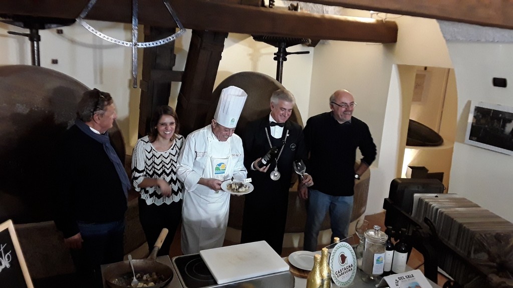 L’evento enogastronomico, organizzato nella straordinaria location del Museo dell’olio della Antica Azienda Raineri di Chiusanico curato dai futuri brand ambassador della Valle Arroscia Geltrude Annunziata, Elisa Arrigo, Ilaria Barla, Sara Canepa, Gabriele Morchio, Santina Tricomi, Giordano Sveva, Monica Cavalleri, dai docenti Stefano Pezzini, Alberto Sgarlato, Claudio Porchia, Franco Laureri e dal tutor Walter Parisi, ha messo in luce le straordinarie potenzialità delle strutture museali per l’ambientazione delle video ricette. Così le grandi macine del frantoio del 1400 del museo dello storico marchio imperiese sono diventate lo sfondo e palcoscenico per il sommelier A.I.S., Giovanni Revello, per presentare l’abbinamento del Rossese di Dolceacqua ‘Serro de’ Becchi’ al petto d’anatra glassato al miele con acquavite di ormeasco e castagne garessine caramellate, e il pigato ‘Moie', sempre etichetta Ramoino, alla ricciola del golfo al burro di alpeggio con olive taggiasche e spuma di castagne garessine .
