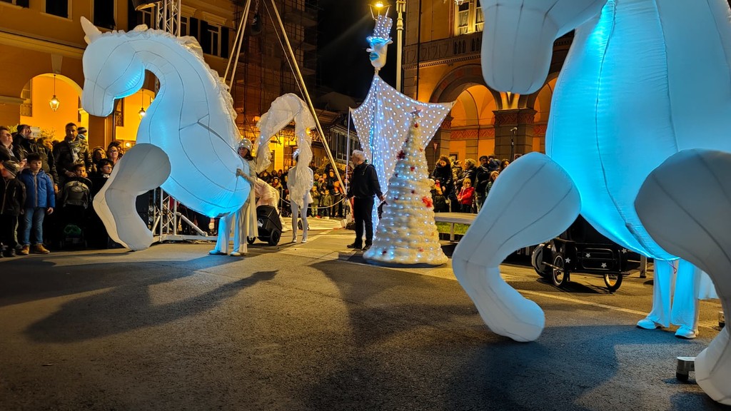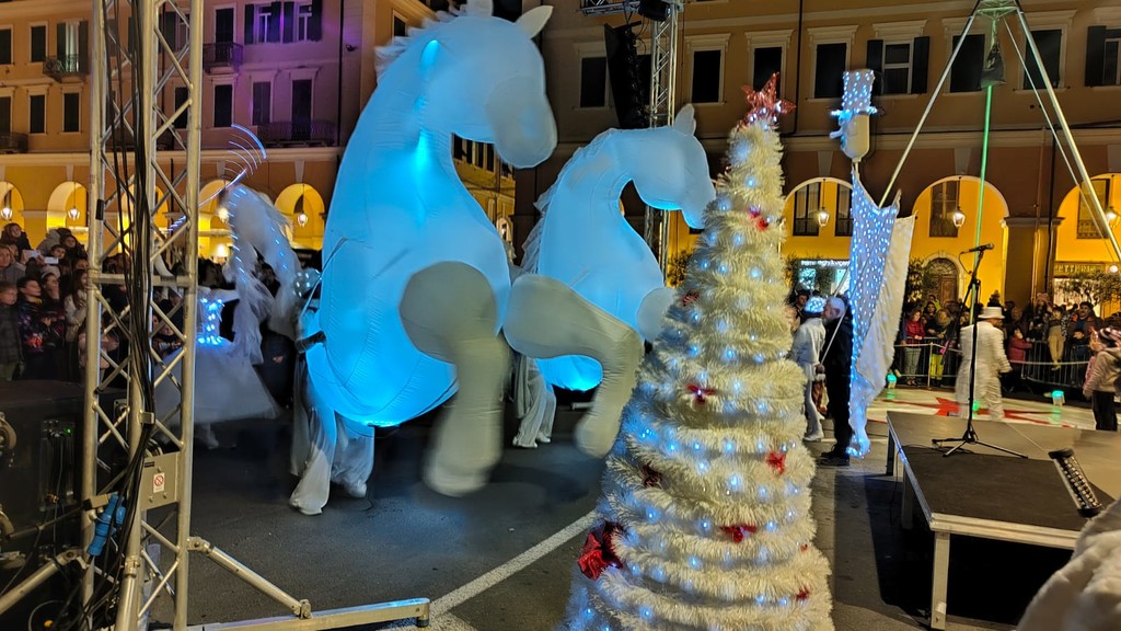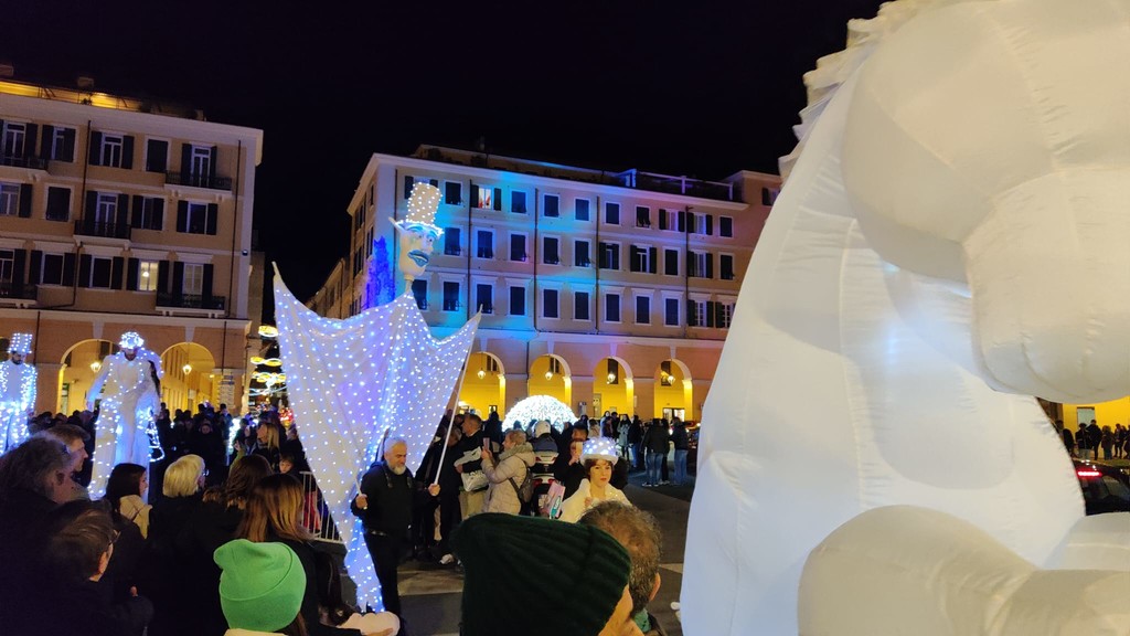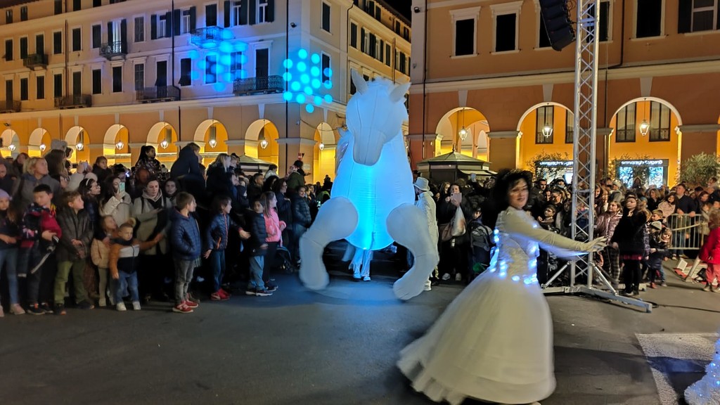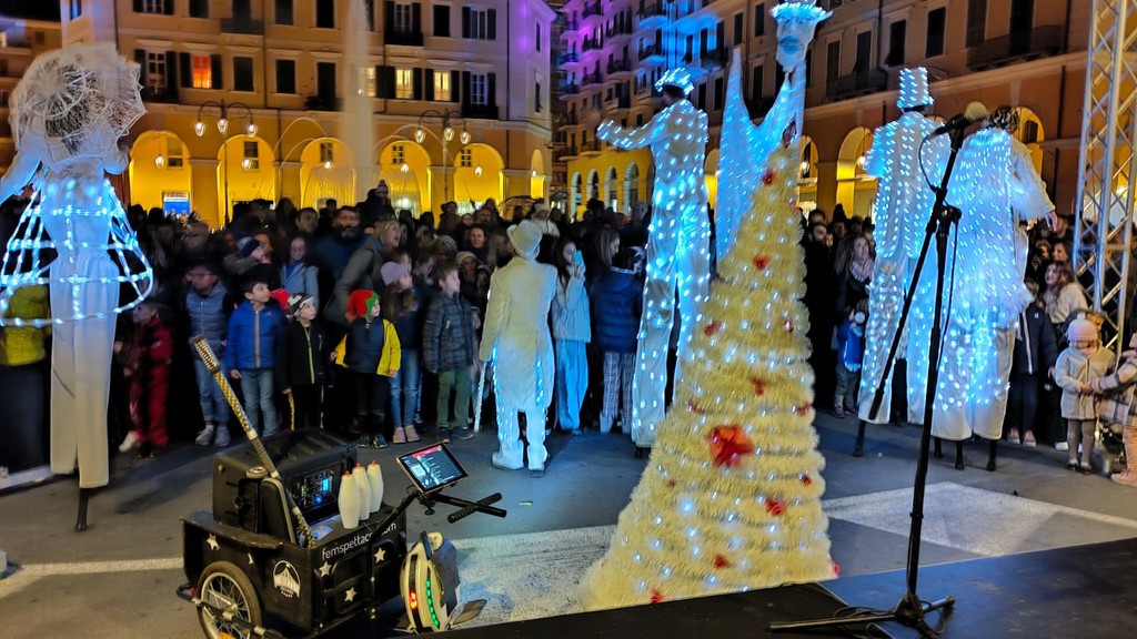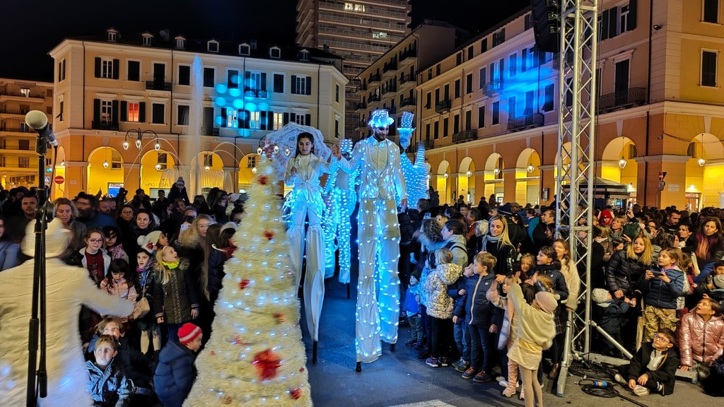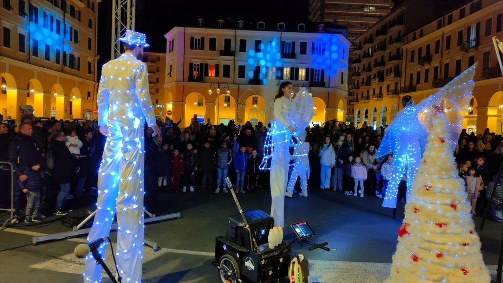 La cerimonia, con tanto di pulsante schiacciato dal neo sindaco dei ragazzi Lorenzo Ferrandini in piazza Dante ha avuto come contorno 'Imperia si illumina', spettacolo allestito per bambini, adulti e famiglie da 'Fiori Eventi' di Santo Stefano al Mare.